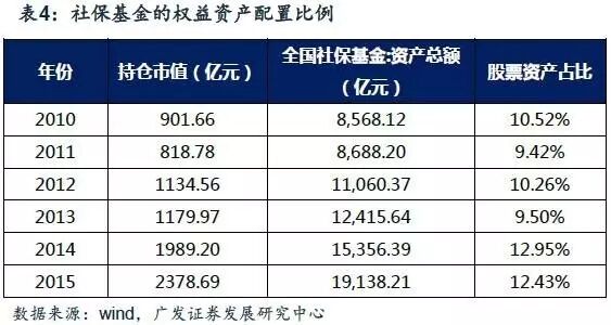 广发证券认为,截至2015年末,养老金累计结余接近4万亿,其中,可(交给社保基金)纳入投资运营的规模大致为2万亿,假定养老金的入市比例为12%(上限30%),对应的入市规模可达约2500亿,占A股总市值的比重为0.45%,整体影响有限。